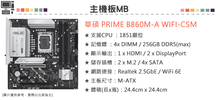 - ★ 華碩 PRIME B860M-A WIFI-CSM 主機板